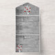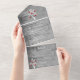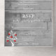 Invite guests to your upcoming wedding with a Red Tree of Hearts All in One Wedding Invite. Invite design features a grey wooden background adorned with a tree with blooming hearts on its branches with a perforated RSVP card. Personalise with the groom and bride's names along with the wedding date and location. Additional wedding stationery available with this design as well.