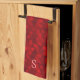 This modern red kitchen towel has a customisable monogram that you can edit to personalise it. The geometric pattern is a series of triangles in shades of deep cherry red to give your kitchen a colour pop of unexpected red.