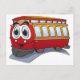 A whimsical cartoon red trolley ready for touring fun and adventure.
