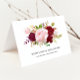 This red tropical and romantic thank you card is perfect for a simple wedding. The artistic bordo marsala design features watercolor, green, pink, burgundy and blush roses assorted with greenery neatly arranged in a graceful and radiant flower bouquet.