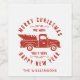Red Truck and Tree Merry Christmas Happy New Year Wine Label - with your initial on the truck door and family name.
