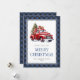Red Truck Blue Buffalo Plaid Watercolor Christmas Holiday Card