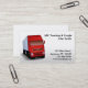 Business card for the trucking, transportation or freight business. Design features red truck on white background.