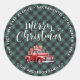 Create beautiful Christmas return address labels featuring a classic red truck on a green buffalo plaid pattern. Easily personalise these green chequered Christmas labels with your family name and address.