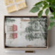 A cute, classic winter design with a vintage red truck, trees, snow and a Snowman!