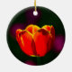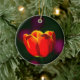 Shining red tulip flower against dark green background and pink blurry spots of other tulip flowers. Boul of fire, goblet of live sunlight. The symbol of new life. Shine, illuminate, irradiate and inspire!