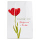 Show your appreciation to your bridesmaids, flower girls or other wedding attendants with this thank you wedding favour gift bag. Perfect to fill with a special gift to show your appreciation. Part of the red tulip watercolor art wedding set. Customise / personalise these gift favour bags with your wedding details and attendants title, name with a personal message or thanks on the back. Currently reads Thank you Bridesmaid Nadia. Uniquely painted in watercolor and designed by Sarah Trett.