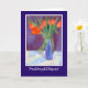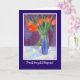 A pretty Birthday Card with 'Happy Birthday' in Welsh and a blue vase of Scarlet Tulips, from an oil pastel painting by Judy Adamson.