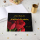 A bouquet of scarlet red tulip flowers and green leaves set on a pure black background grace this gorgeous floral birthday party guest book. Customise all text for your special occasion.