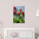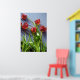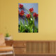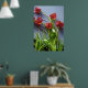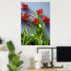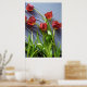 Photograph of red tulips against a blue background. Customize the poster print with your own images or text!