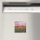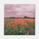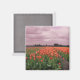 Red Tulips Landscape. A fantasy spring landscape with red tulips field and windmill on the horizon against a purple cloudy sky fridge magnet. This red tulip festival magnet is fully customisable, add your texts and images!