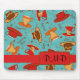 Red Turquoise Coffee Cups Pattern Monogram Mouse Mat