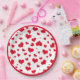 Red Valentine Hearts Random Scattered Pattern Paper Plate
