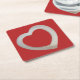 Red Valentine minimalist white 3D heart Square Paper Coaster