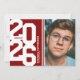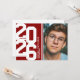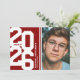 Modern red graduation party invitations featuring an eye-catching class year layout in a varsity font, a photo of the grad, two white stripes, their name, school, and an easily personalised party invite template, these sporty invites will make your celebration a memorable one.