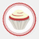A sticker featuring an illustration of a red velvet cupcake inside a decorative circle.