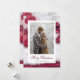 Custom red vintage photo Christmas cards featuring an elegant script font title, and a photo frame with Christmas gifts and falling snow. Easily personalise these vintage photo Christmas cards with your photo, and family name. Create a magical red photo Christmas card for your family and friends this holiday season.