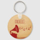 Quirky and unique Vintage Gramophone Keychain in dark red featuring a silhouette of an old-fashioned gramophone and a cascade of musical notes on a digital art rendered paper background. This chic key fob will keep your keys handy with vintage flair and is perfect for any music lover. Easy to customize, simply personalize with the text of your choosing. Click on the "Customize It" button to find additional personalization options.