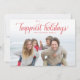 The classic design features a full-bleed photo layout and a red, vintage script greeting. The backer includes a subtle wide-striped pattern and room to include a personalised message or additional photos.