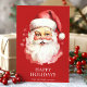 Red Vintage Watercolor Santa Claus Christmas Holiday Card