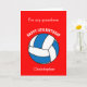 A red volleyball 11th birthday card for grandson, son, godson, etc.. You will be able to easily personalize the front of this volleyball birthday card with his name. The inside card message and the back of the card can also be edited. This personalized 11th birthday card for him would make a great keepsake.