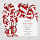 This volleyball themed party invitation features clustered red and white volleyballs at the left and top edges on the front and a single cluster covering the back of the invitation - customise the party details in coordinating colours on a white background - by katz_d_zynes
