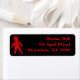 Red voodoo doll address label, Background colour and text can be customised.