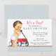 Boy baby shower invitation with adorable little boy and cute red wagon on a baby blue and red background. This adorable red wagon baby shower invitation is easily customised for your event by simply adding your details in the font style and wording of your choice. You can also change the background colour.