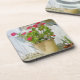 Red watercolor geranium coaster