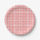 Red Watercolor Gingham Pattern Birthday Paper Plate