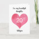 A personalised 20th birthday card for her which features a red watercolor heart on the front. You will be able to easily personalise the front of the birthday card with her age and name. This personalised heart 20th birthday card would be a great birthday card keepsake for her.