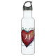 This custom water bottle features heart illustration in red watercolors, with your single initial monogram inscribed inside. Easy to customise the font.