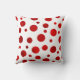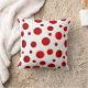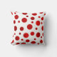 Pillow printed with original watercolor polka dot pattern in shades of red on white background.