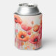 Can cooler with a beautiful watercolor image. A field of red flowers with lovely watercolor drips and splotches.