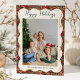 A festive holiday photo card with a patterned back design for a cheerful and timeless seasonal look.
