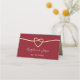 Simple, elegant, minimalist, modern red wedding place card with romantic gold rope heart.