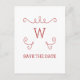 Modern and simple Whimsical Flourish Monogram Save the Date Postcard featuring an elegant swirl motif in red. Easy to customise, simply add your initial and wedding details in the text fields provided. Click "Customise It" to find more personalisation options.