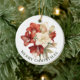 Simple and elegant Christmas ceramic ornament with beautiful traditional red and white Christmas Amaryllis on a white background. Personalise the backside with Name and Date.
