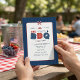 Perfect for your summer cookout, backyard BBQ, or patriotic party, this invitation blends bold Americana style with a clean, modern layout—making it ideal for both casual gatherings and stylish celebrations.