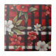Red White and Black Farmhouse Floral Check Tile