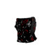 A cool, modern and eye-catching musical design featuring a random jumbled pattern of musical notes and treble clefs in red and white on a classical black background.