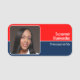 This professional name tag features a name in white on the top red background and the title or business name below on a blue background on the one side of the design. Replace the template photo with your photo or logo. A square photo works best. Personalise the text fields or edit using the design tool to select a font style, size, and colour you prefer.