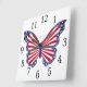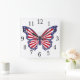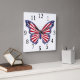 Red White And Blue Butterfly Square Clock