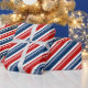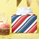 A classic candy cane stripe holiday wrapping paper featuring a red, white and blue candy cane stripe.
