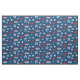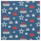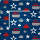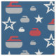 Fabric featuring a stars and curling rocks pattern in red, white and grey on blue background. Perfect for curlers and curling fans.