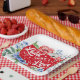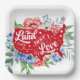 Celebrate Independence day with an All-American 4th of July party! This design features a red, white and blue bouquet with a red United States map surrounded by flowers on a bright white background. Text reads "Land that I Love."