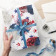 Red, white and blue floral 4th july wrapping paper compatible with the associated collection below.