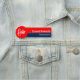 This professional name tag features a name in white on the top red background and the title or business name below on a blue background. Hello in white text is in the circle on the left and can be changed to Vote, Hi or another short word. Personalise the text fields or edit using the design tool to select a font style, size, and colour you prefer.
