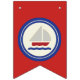 This red, white and blue banner bunting is patterned with a sailboat pn a red background/ So cute for your nautical themed party space, picnic, or other summer event. 16 flags for you to add letters or text, if desired. Get coordinating paper plates, napkins and other mix or match items in this design at www.zazzle.com/pinkladybugs