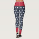 Celebrate the 4th of July with these stylish women's leggings, perfect as a festive gift for girls. Featuring two wide red bands at the top and bottom, with a middle section of white stars on a dark blue background, these leggings combine comfort with patriotic flair. The high-quality fabric ensures a snug fit, making them ideal for any Independence Day event, whether at a BBQ, a fireworks show, or a parade. Show off your American pride with these bold and fashionable leggings.
